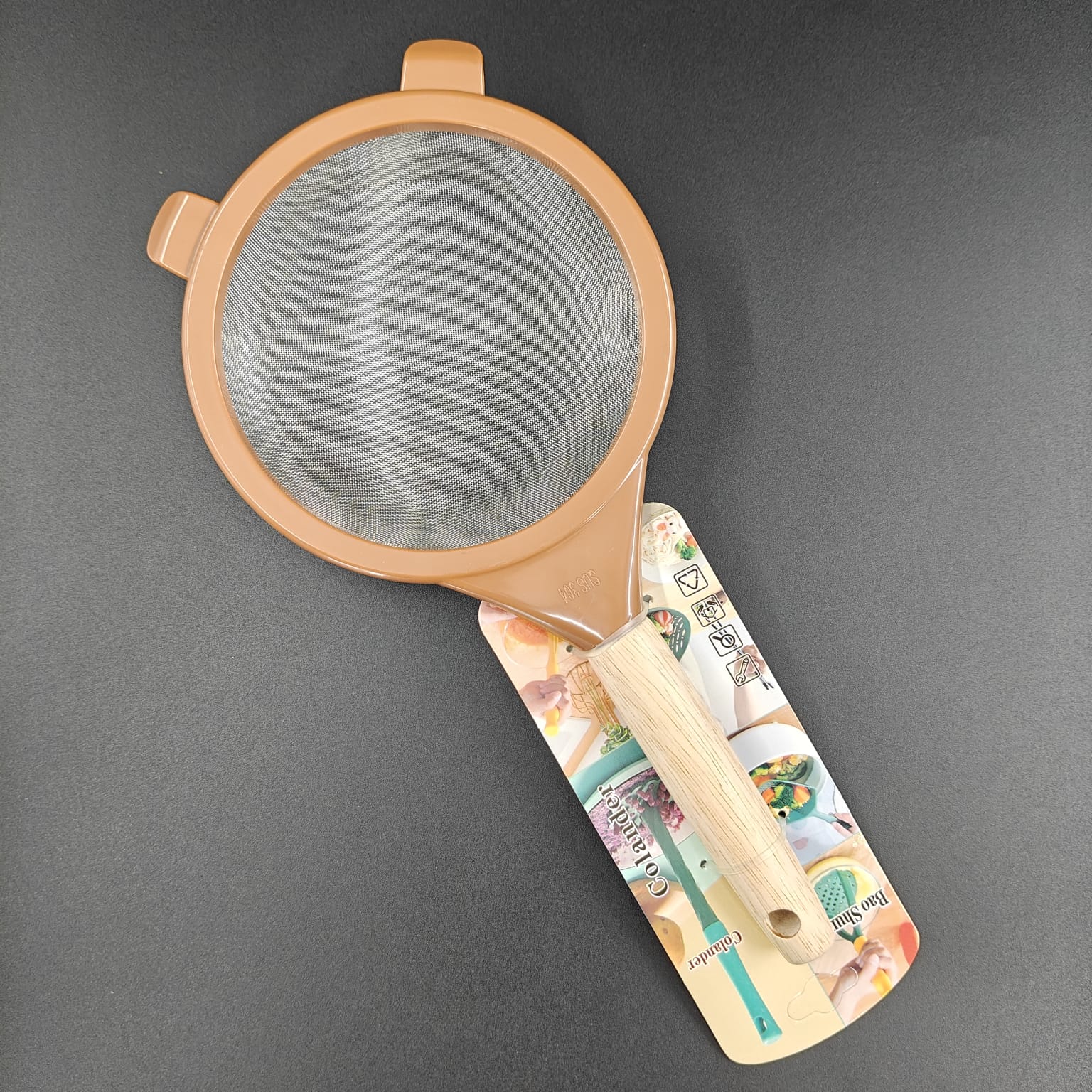 Crafted from durable 304 stainless steel, the 304 Strainer - B features a robust design ideal for efficient straining tasks. Its wooden handle provides a comfortable, heat-resistant grip, ensuring safe and precise handling during use. This strainer combines longevity with practicality, making it a reliable tool for both professional and home kitchens.