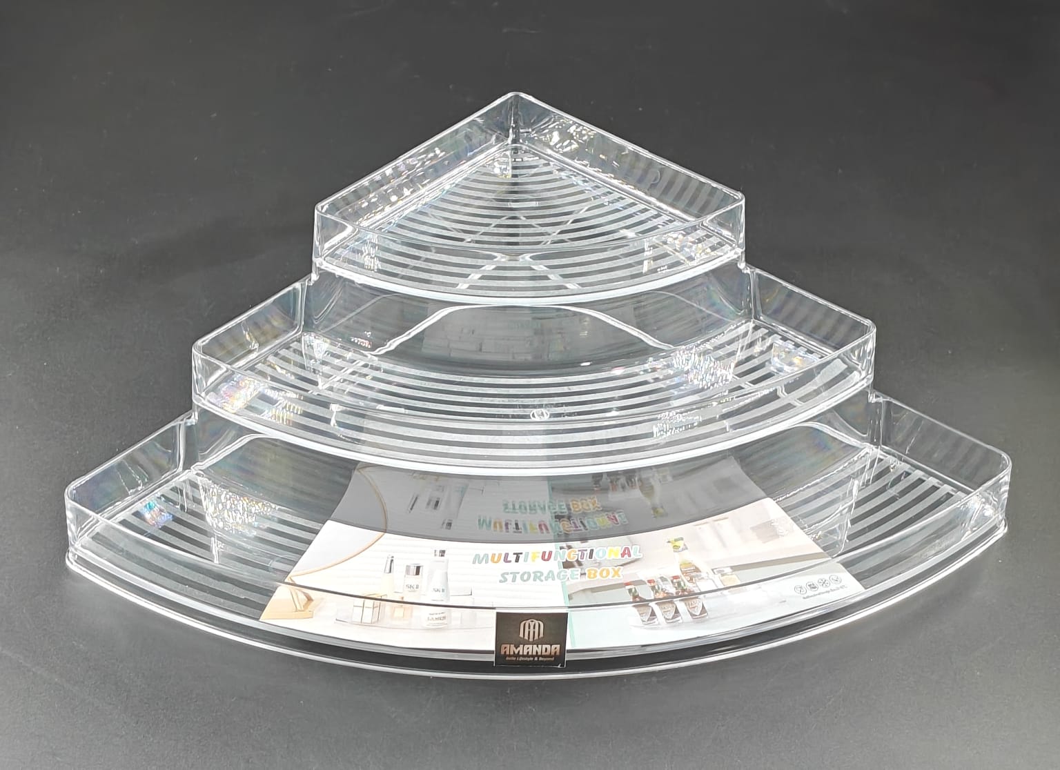The CORNER ORGANISER STEP - 3 is a versatile and efficient storage solution for your home or office. With three spacious shelves and a unique corner design, this organizer maximizes space and keeps your items neatly organized. Made from durable materials and easy to assemble, it is the perfect choice for optimizing your storage space.