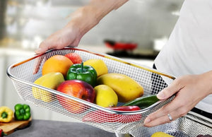 This multi-use colander features a durable stainless steel mesh design, ensuring strength and longevity. Its sturdy construction allows for efficient draining and rinsing of various foods, making it an essential tool for any kitchen. Designed for versatility, it handles everything from washing vegetables to straining pasta with ease.