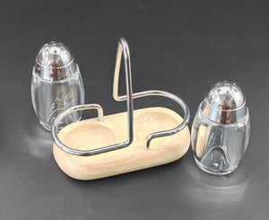 The SHENGYA Salt and Pepper Dispenser - 3585 features a sturdy wooden base and transparent containers made from non-toxic, odorless materials, ensuring safe and hygienic use. Its design maintains a fresh, like-new appearance even after washing, combining durability with aesthetic appeal. This dispenser offers precise seasoning control while adding a touch of elegance to any kitchen setting.